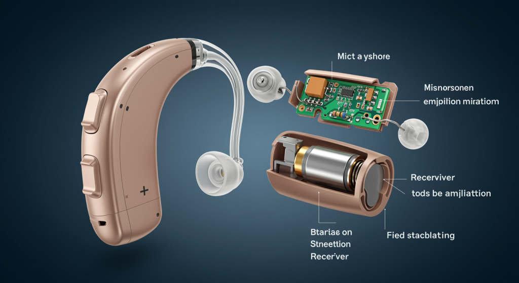 Receiver(Speaker): The receiver changes the amplified sound back into sound and sends it to the ear canal.